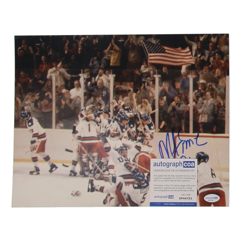 Photo measures 11" x 14" in size and has been hand-signed and inscribed by Mike Eruzione.