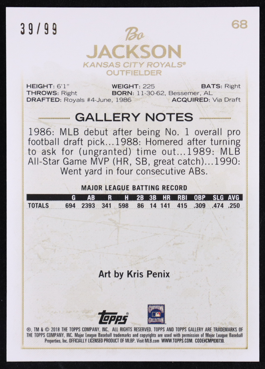 Bo Jackson 2018 Topps Gallery Green #68 #39/99