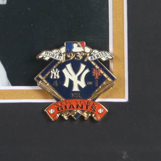 Frame measures approximately 13" x 16" in size. Featuring an unsigned 8" x 10" photo of Lou Gehrig and Joe DiMaggio (New York Yankees). Display also features a 1937 World Series Pin. Please note that the item is unsigned.