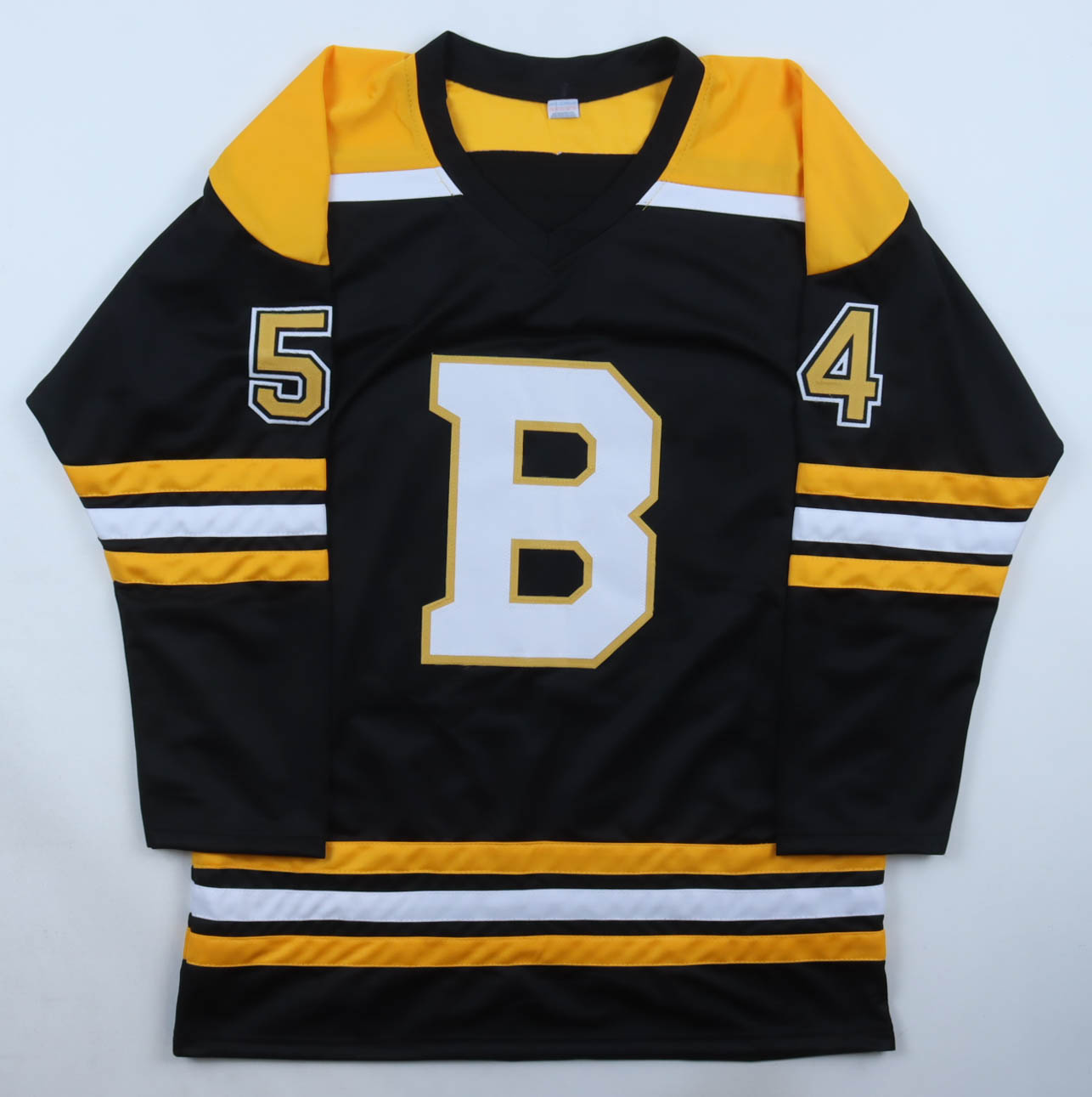 Custom jersey with everything sewn on, size XL. Hand-signed and inscribed by Adam McQuaid.