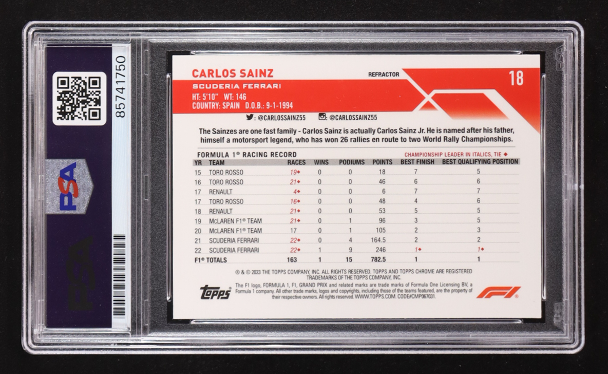Carlos Sainz Signed 2023 Topps Chrome Refractor #18 (PSA)