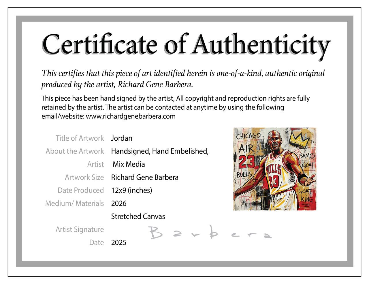 Richard Gene Barbera Signed "Michael Jordan" 2026 11x11 Original Art Canvas (Barbera)