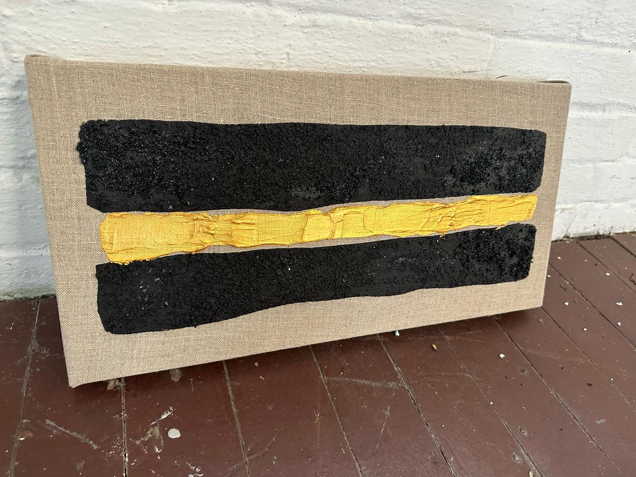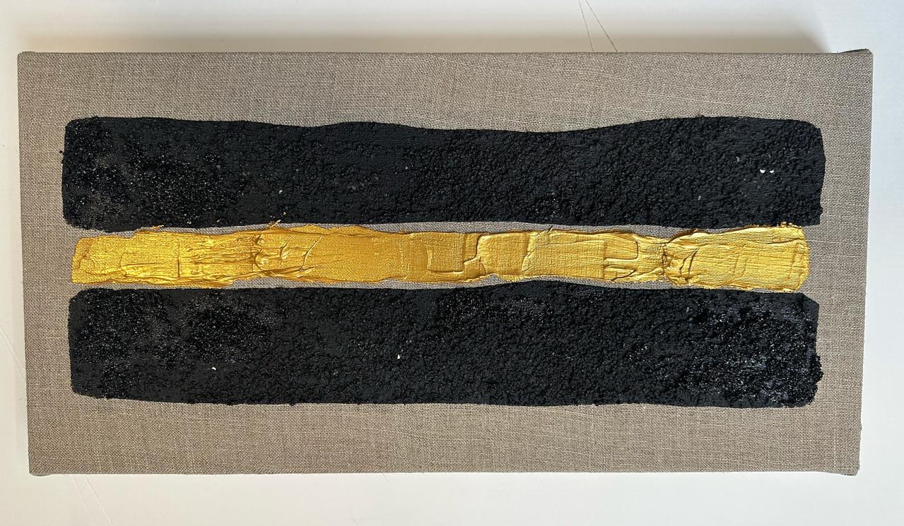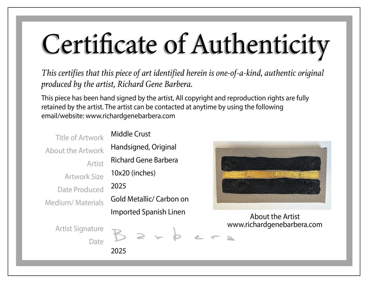 Richard Gene Barbera "Middle Crust" 10x20x3 Gold Metallic Carbon on Imported Spanish Linen