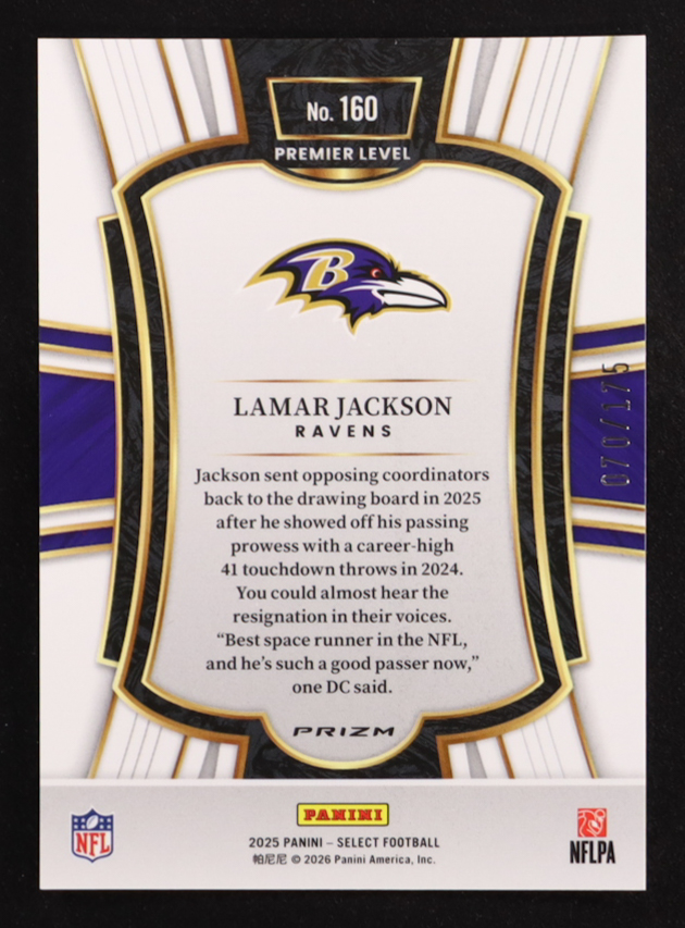 Lamar Jackson 2025 Select Prizm Blue #160 #070/175
