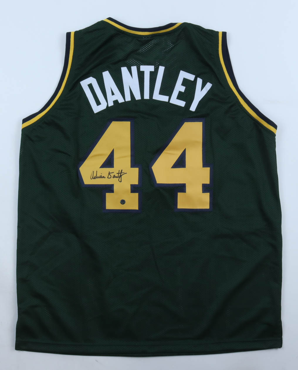 Custom jersey with everything sewn on, size XL. Hand-signed by Adrian Dantley (HOF).
