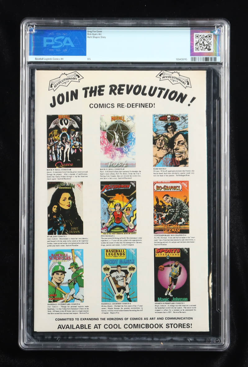 June 1992 "Baseball Legends" Issue #4 Revolutionary Comics Book. Comic book is graded PSA (8.5). See photos for condition of the comic book.