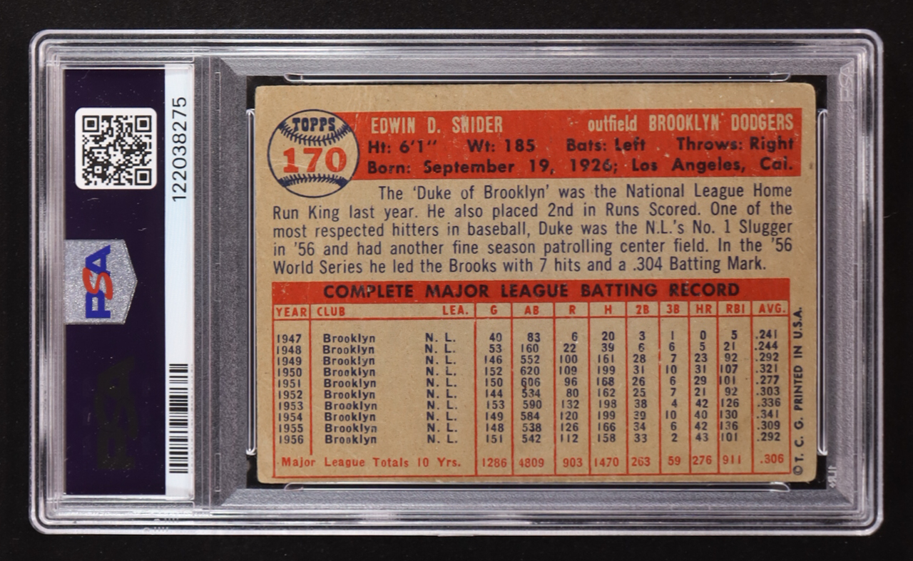 Duke Snider Signed 1957 Topps #170 (PSA)