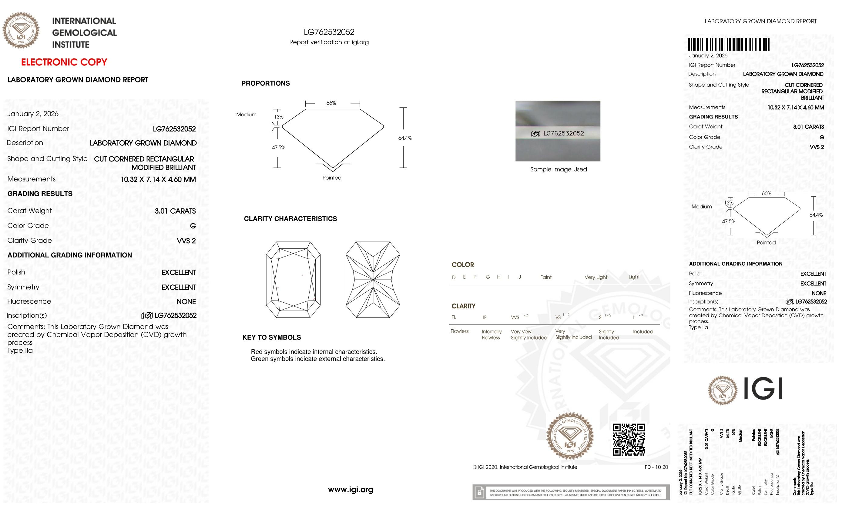 International Gemological Institute IGI Laboratory Grown Diamond Report