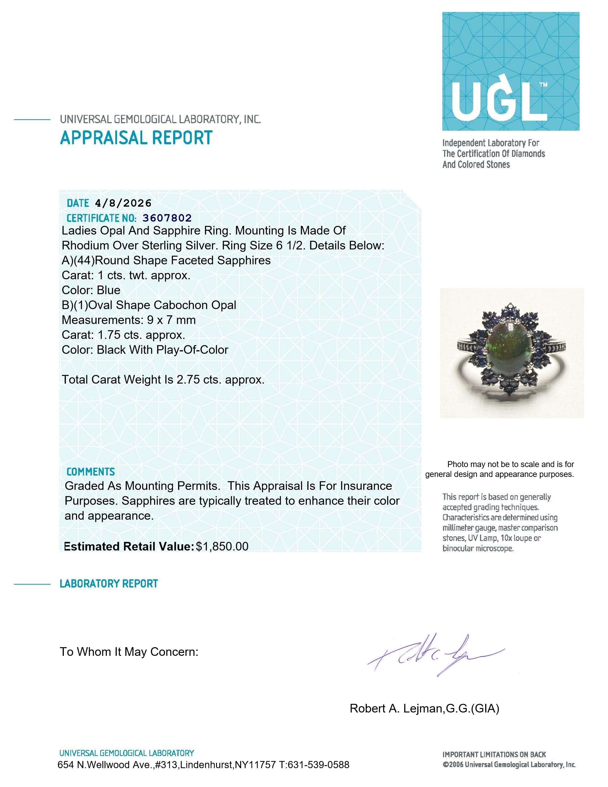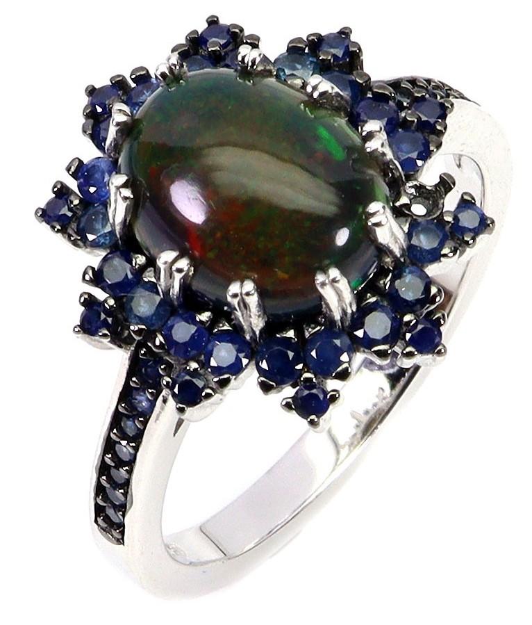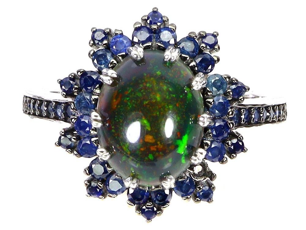 2.75 Carats Natural Black Opal & Sapphire Ring | $1,850 Estimated Retail Value (UGL Cert) | Brand New