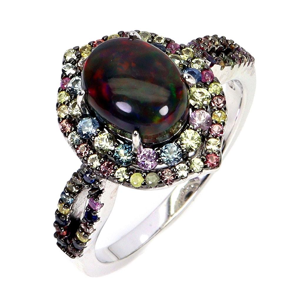 3.00 Carats Natural Black Opal & Multi-Colored Sapphire Ring | $1,650 Estimated Retail Value (UGL Cert) | Brand New