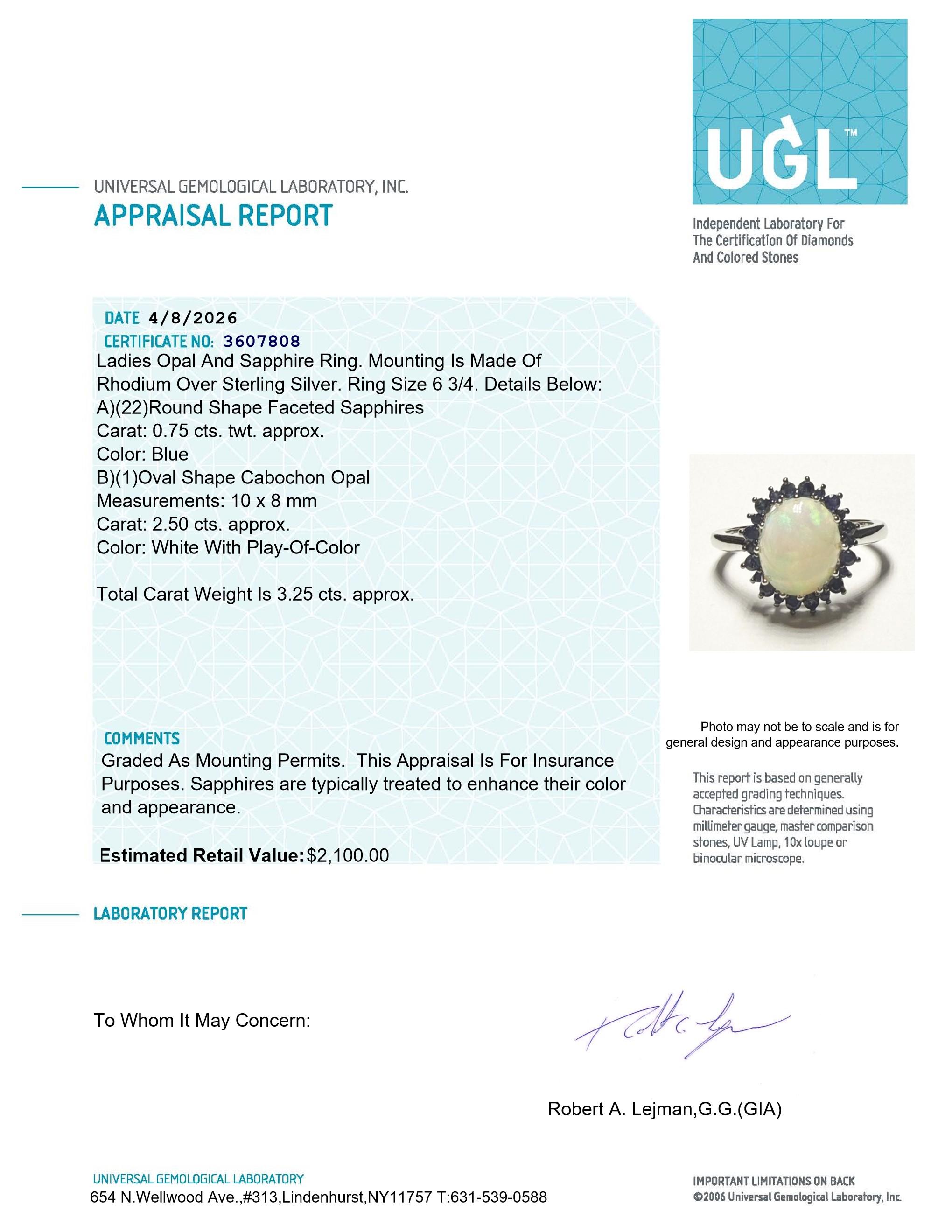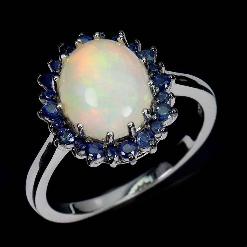 3.25 Carats Natural Opal & Sapphire Ring | $2,100 Estimated Retail Value (UGL Cert) | Brand New