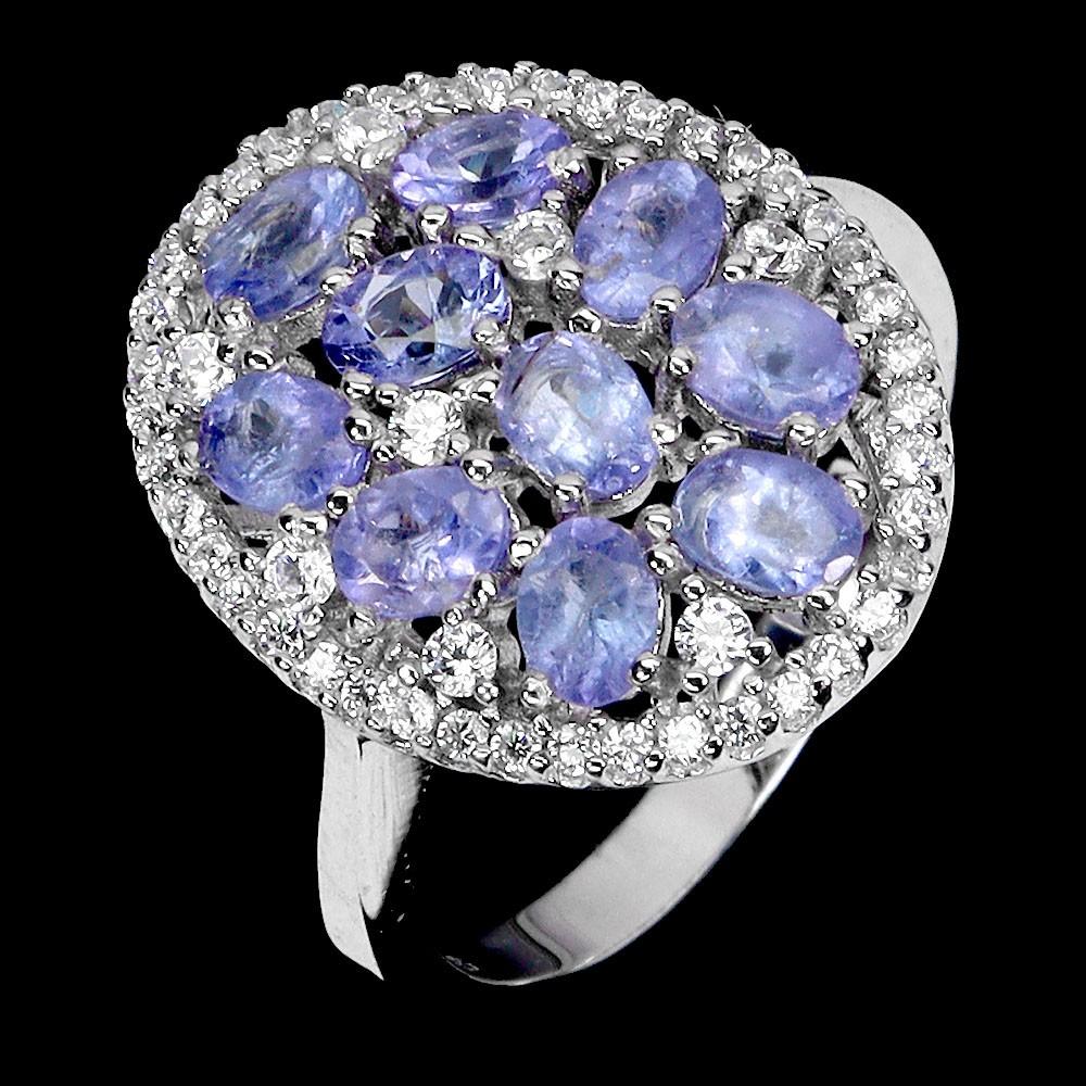 Offered for sale is a new ladies tanzanite and white zircon ring set in sterling silver. This ring features a cluster of oval faceted tanzanites surrounded by sparkling white zircons creating a bold and elegant design