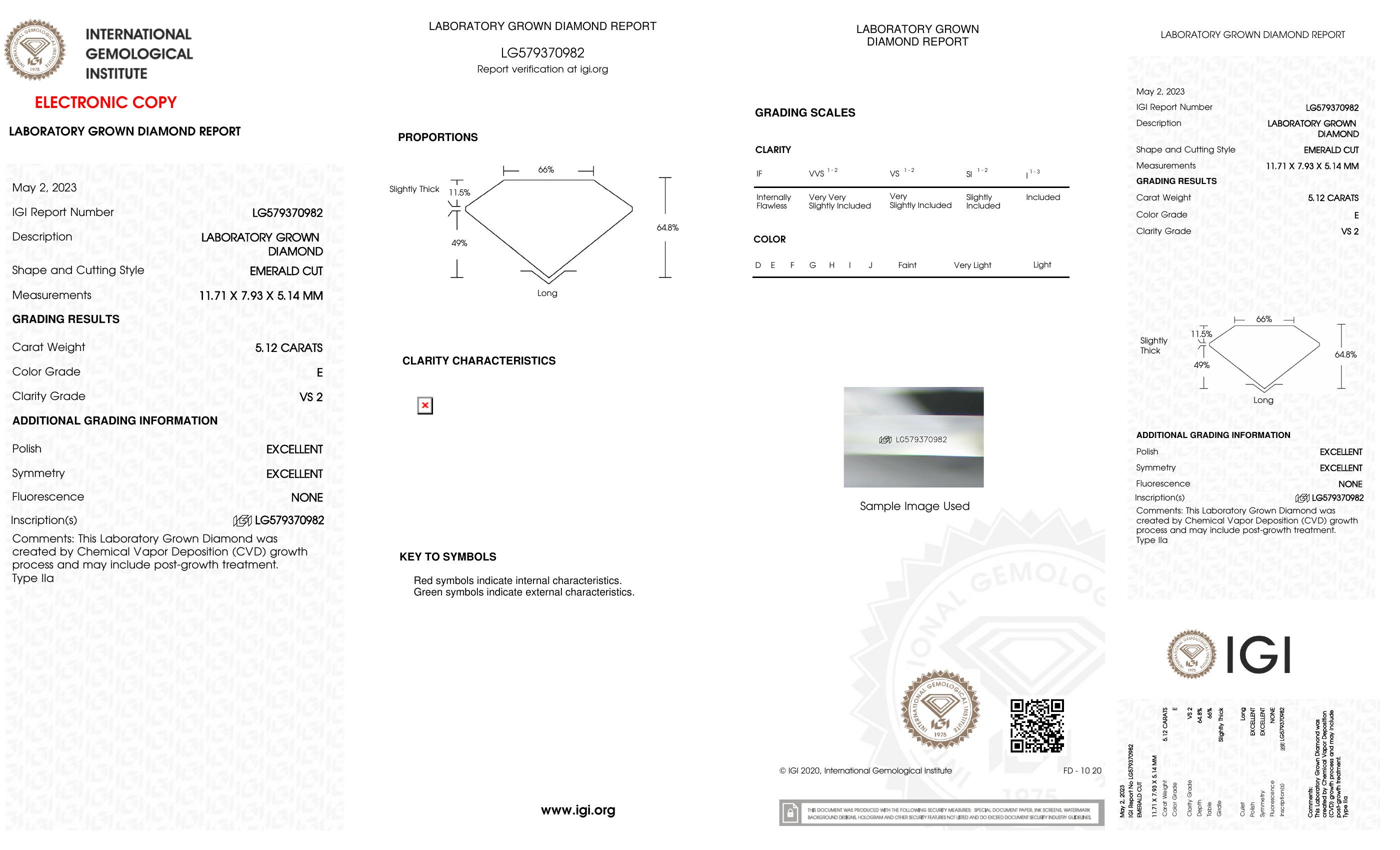 5.12 Carats Lab Grown Diamond Loose E, VS2 | $7,400 Estimated Retail Value (UGL & IGI Certs) | Emerald Cut