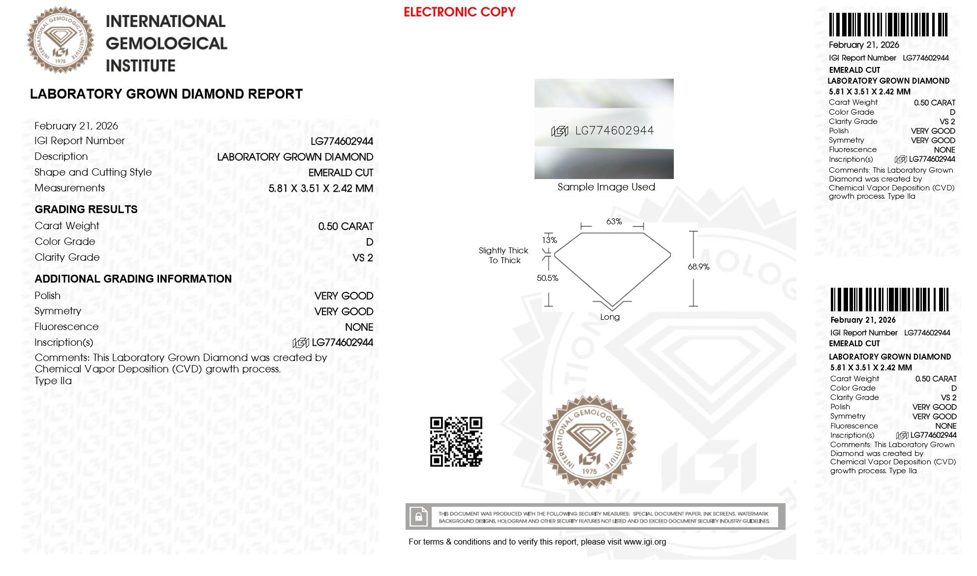 IGI Laboratory Grown Diamond Report