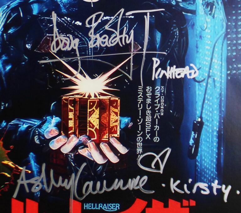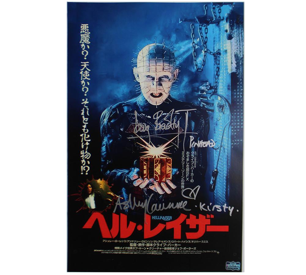 Movie Poster measures 11” x 17” in size and has been hand-signed and inscribed by Doug Bradley and Kirsty Laurence.