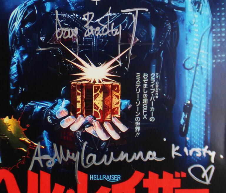Photo measures 11” x 17” in size and has been hand-signed and inscribed by Doug Bradley and Kirsty Laurence.