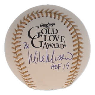 Mike Mussina Signed Gold Glove Award Logo Baseball Inscribed "7x" & "HOF 19" (JSA)