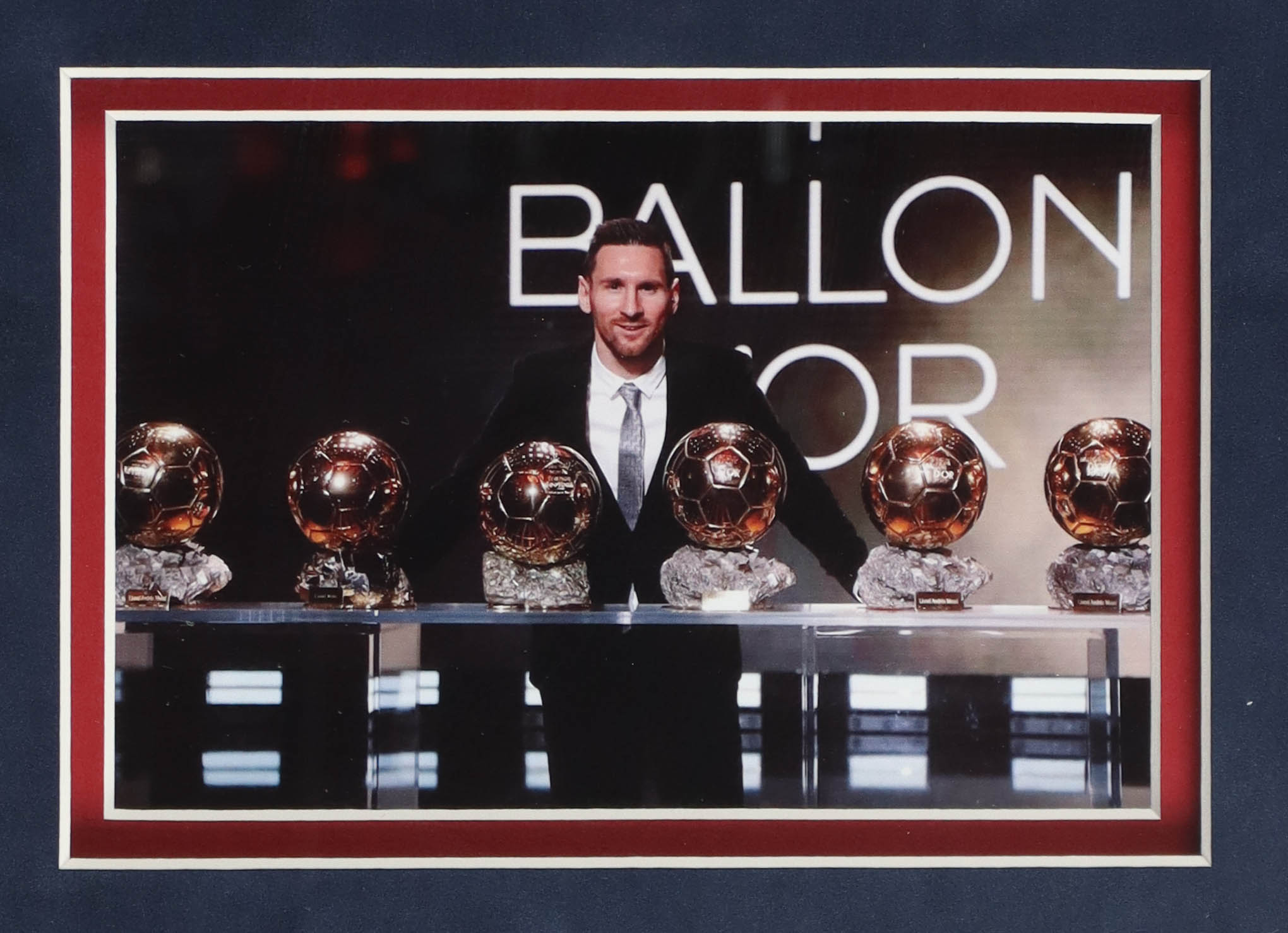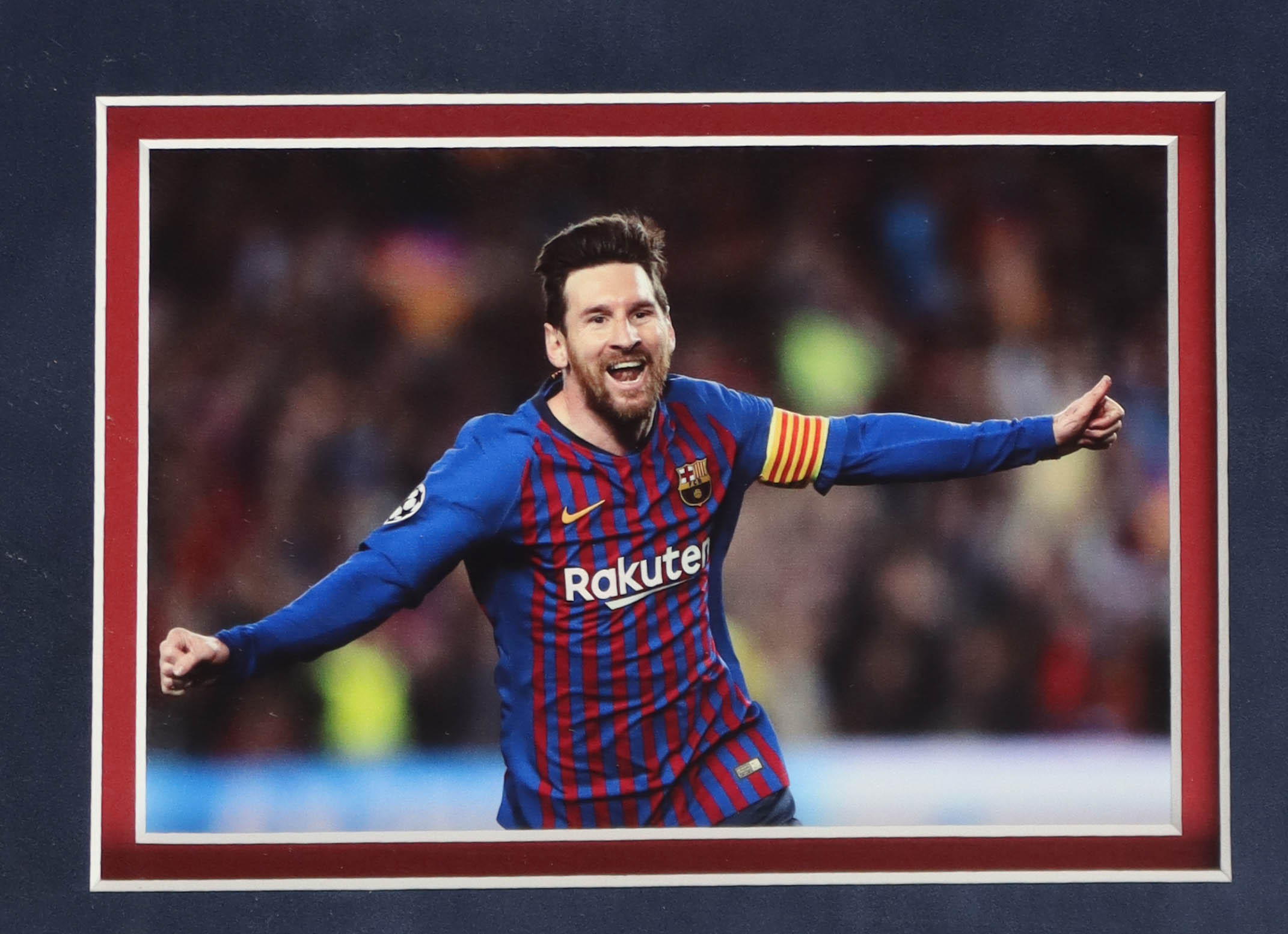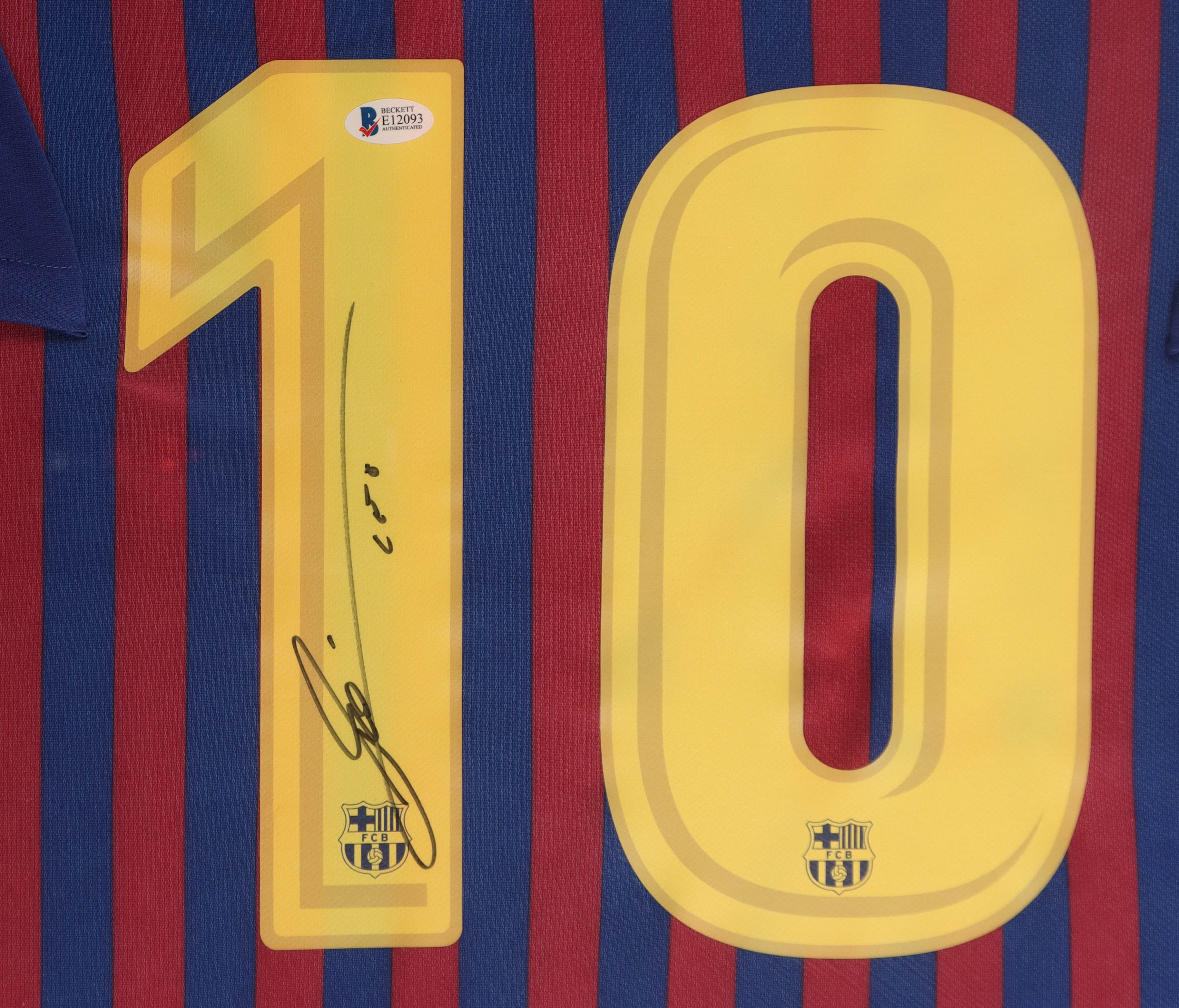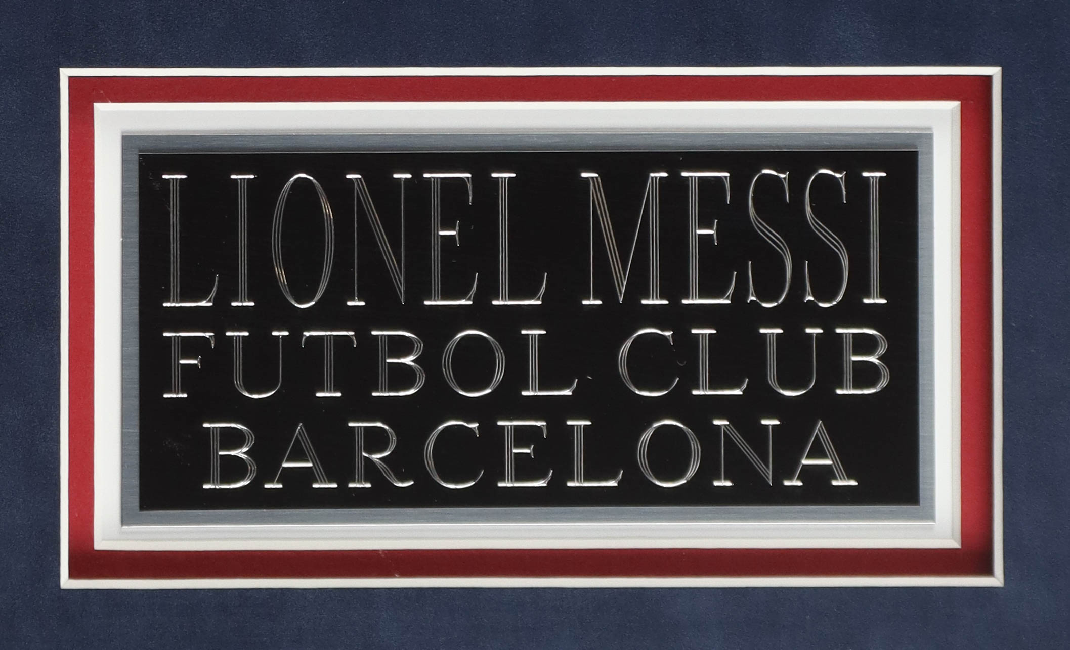 Custom frame measures 34" x 42" in size and features a jersey that has been hand-signed by Lionel Messi.