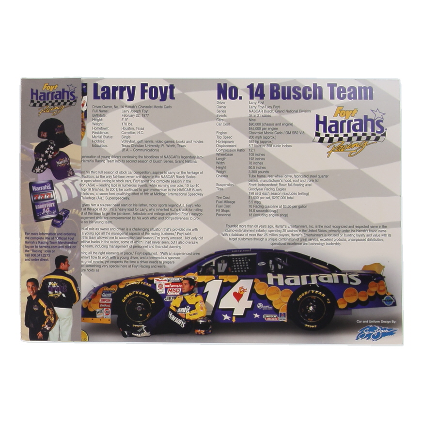 Larry Foyt Signed NASCAR 8.5x12 Hero Card (Beckett)
