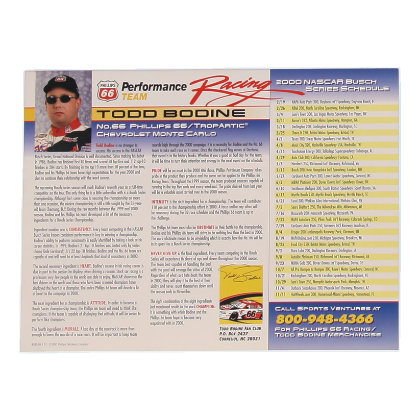 Hero card has been hand-signed by Todd Bodine.