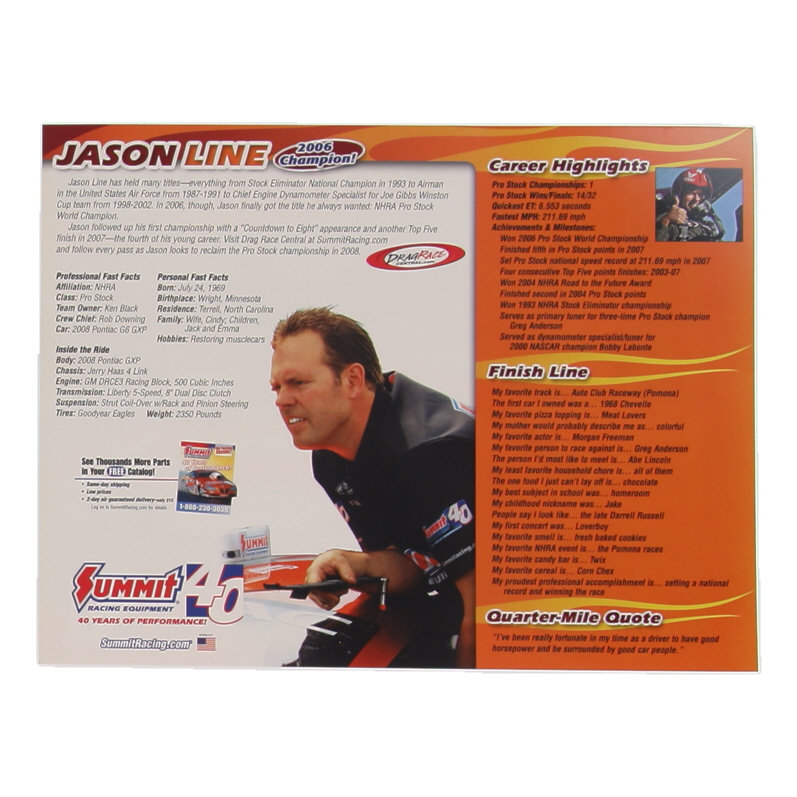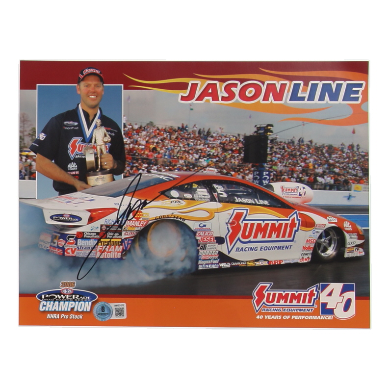 Jason Line Signed NHRA 8.5x11 Hero Card (Beckett)