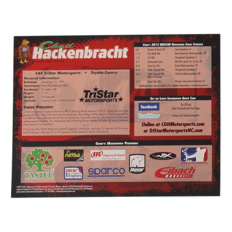 Chad Hackenbracht Signed NASCAR 8.5x11 Hero Card (Beckett)