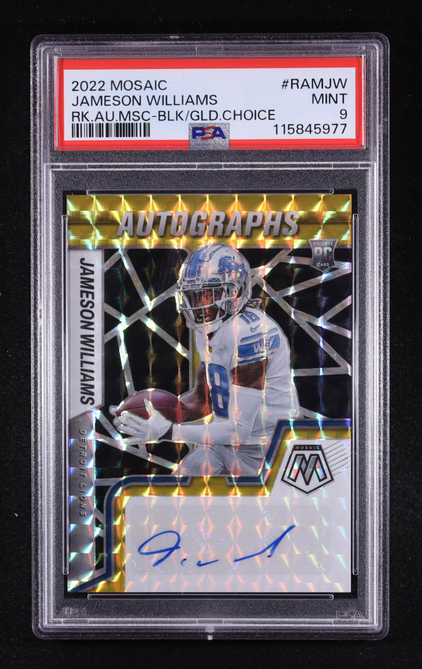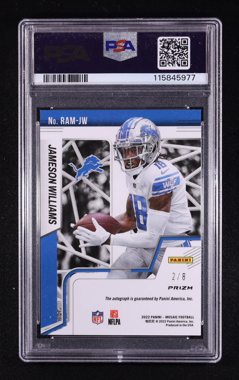 Jameson Williams 2022 Panini Mosaic Rookie Autographs Choice Black Gold #RAM-JW RC #2/8 (PSA 9)