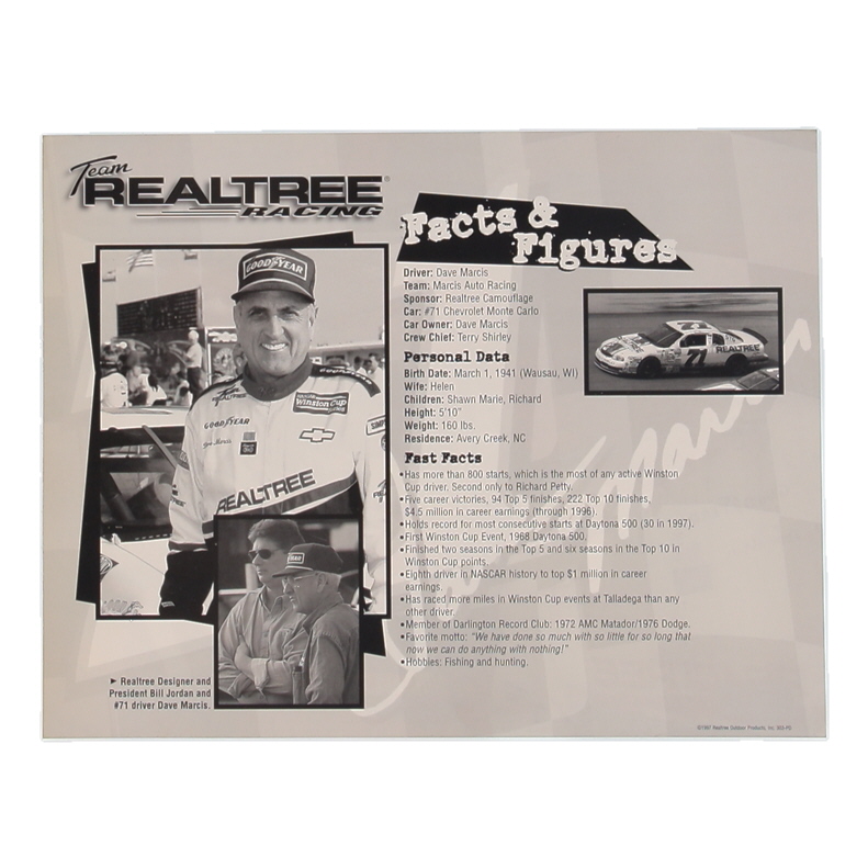 Dave Marcis Signed NASCAR 8.5x11 Hero Card (Beckett)
