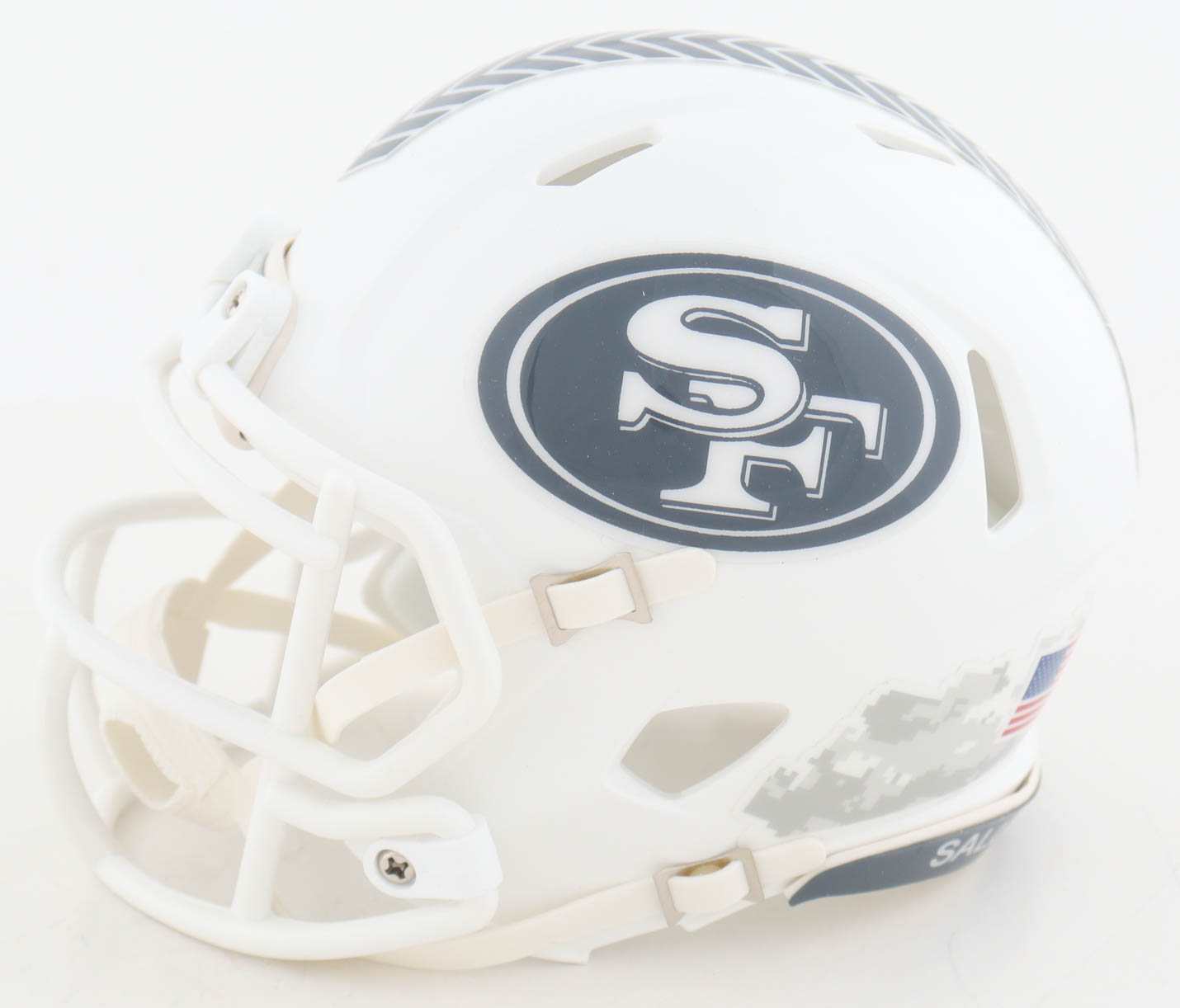 Riddell San Francisco 49ers Salute To Service Alternate Speed Mini Helmet. Has been hand-signed by Kyle Juszczyk. Please note there is a scratch through the signature.