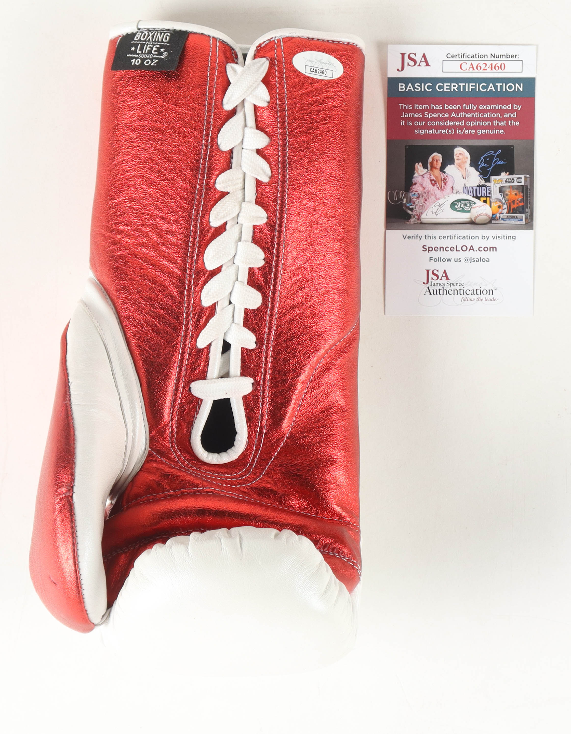 The boxing glove includes an official James Spence Authentication (JSA) hologram and matching COA for authenticity purposes.
