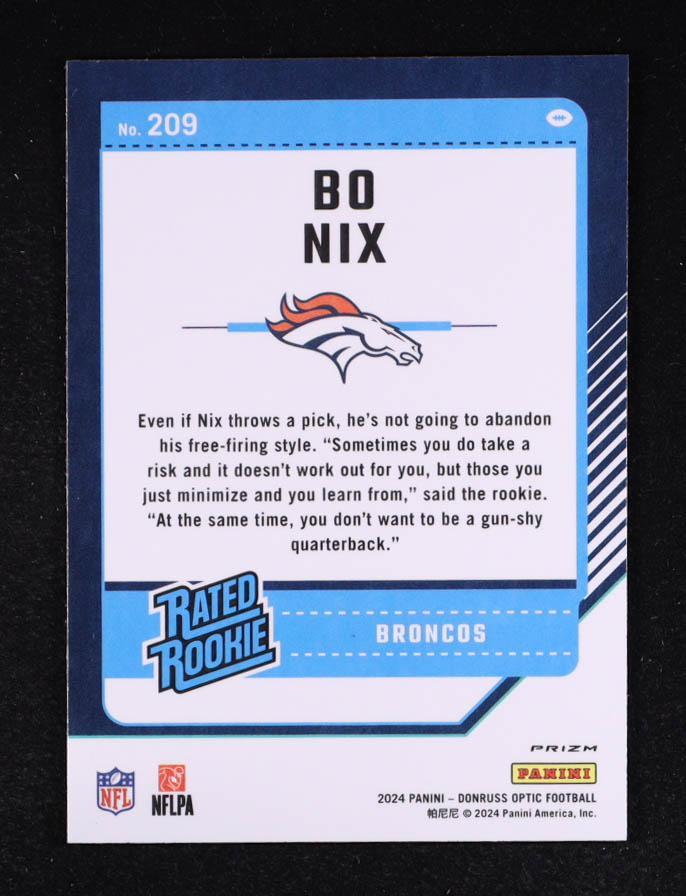 Bo Nix 2024 Donruss Optic Green Velocity #209 RR RC