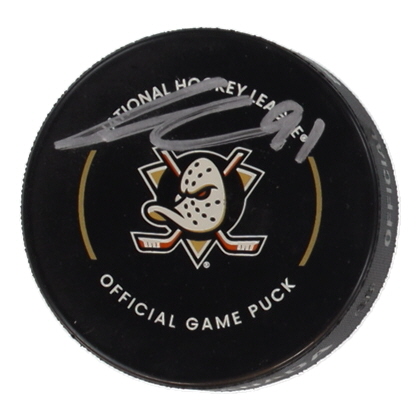 Anaheim Ducks Logo Hockey Puck. Hand-signed by Leo Carlsson.