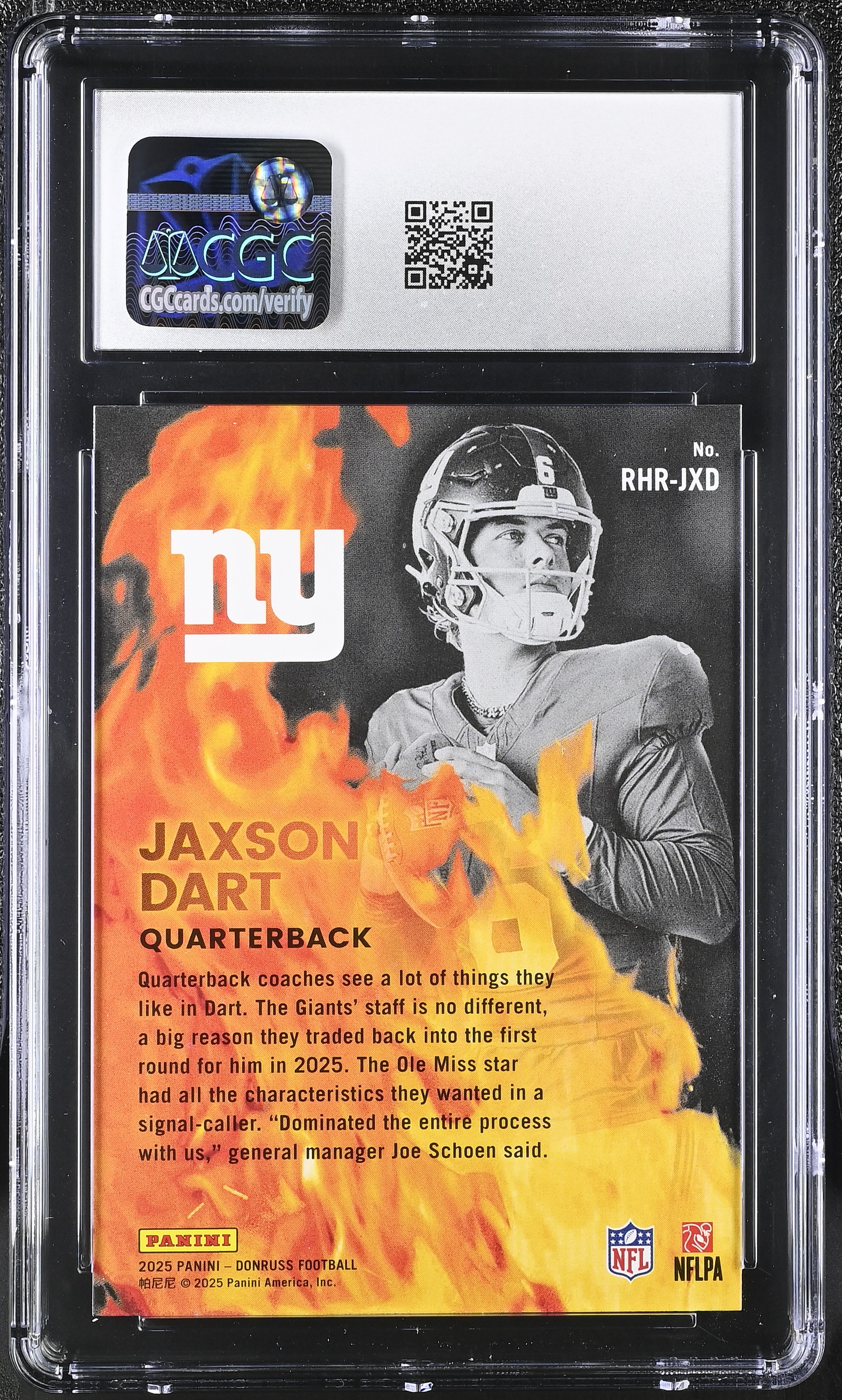 Jaxson Dart 2025 Donruss Red Hot Rookies #RHR-JXD RC (CGC 8.5)