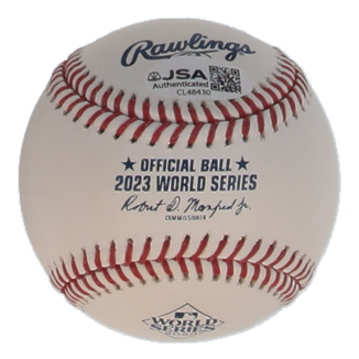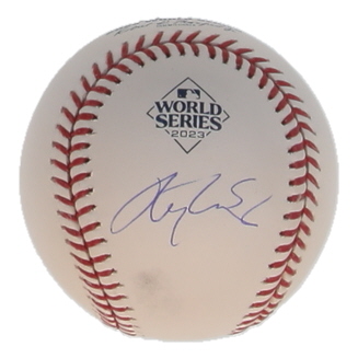 Rawlings Official 2023 World Series logo baseball. Hand-signed by Alek Thomas (Arizona Diamondbacks).