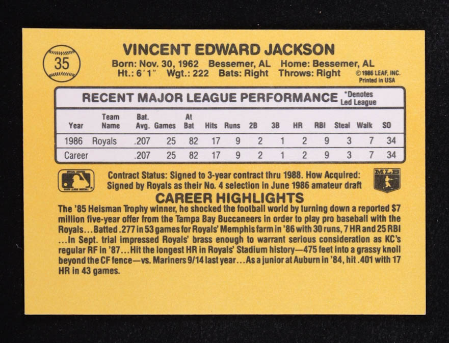 Bo Jackson 1987 Donruss #35 RC