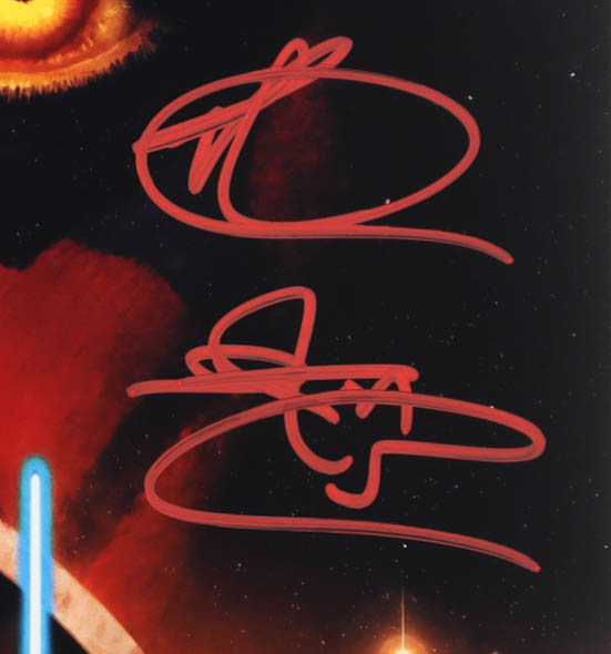 Photo measures 16" x 20" in size and has been hand-signed and inscribed by Ray Park (Darth Maul).