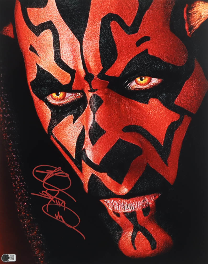 Photo measures 16" x 20" in size and has been hand-signed and inscribed by Ray Park (Darth Maul).