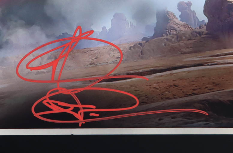 Photo measures 16" x 20" in size and has been hand-signed and inscribed by Ray Park (Darth Maul).
