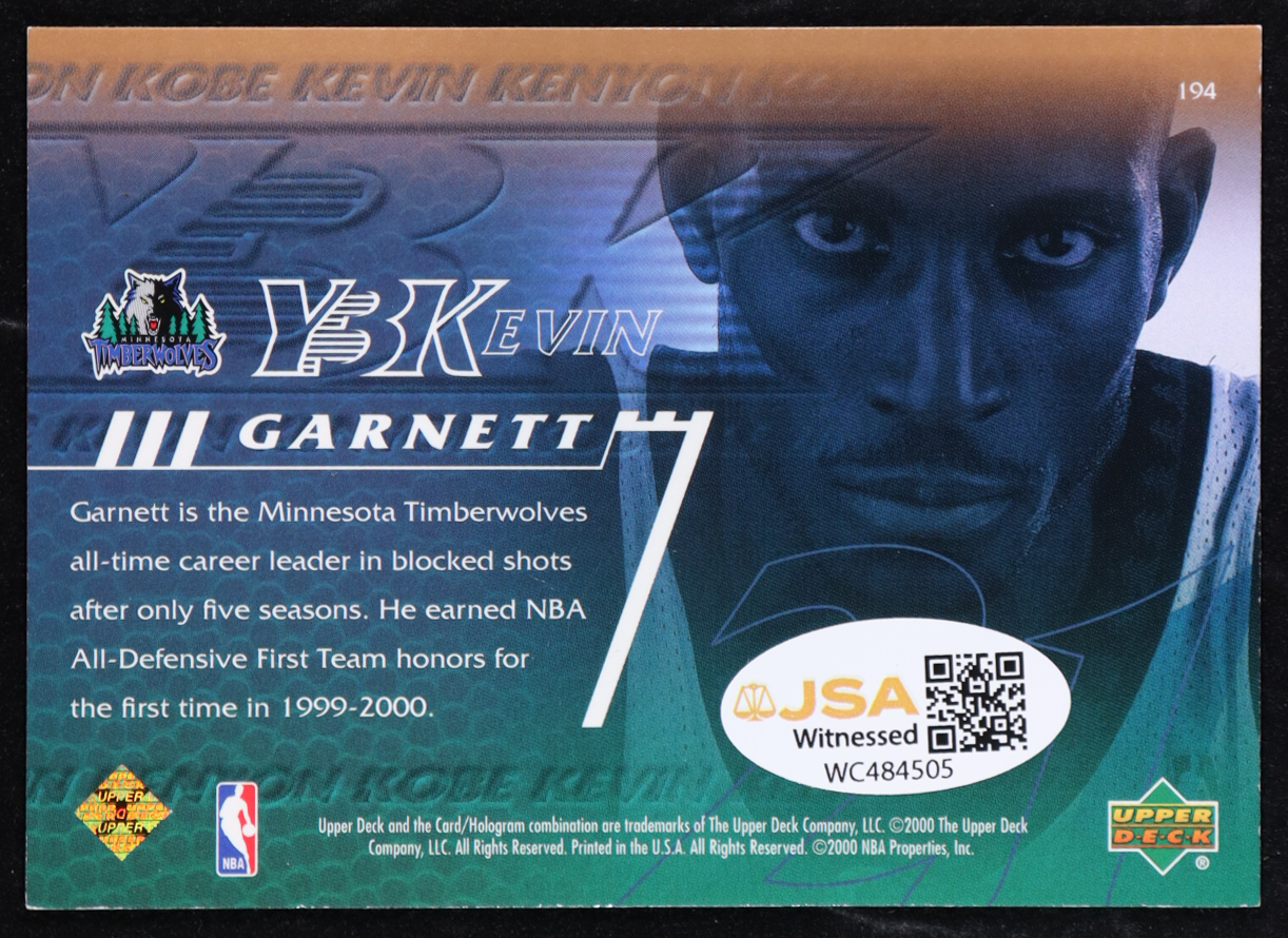 Kevin Garnett Signed 2000-01 Upper Deck #194 Y3K (JSA)