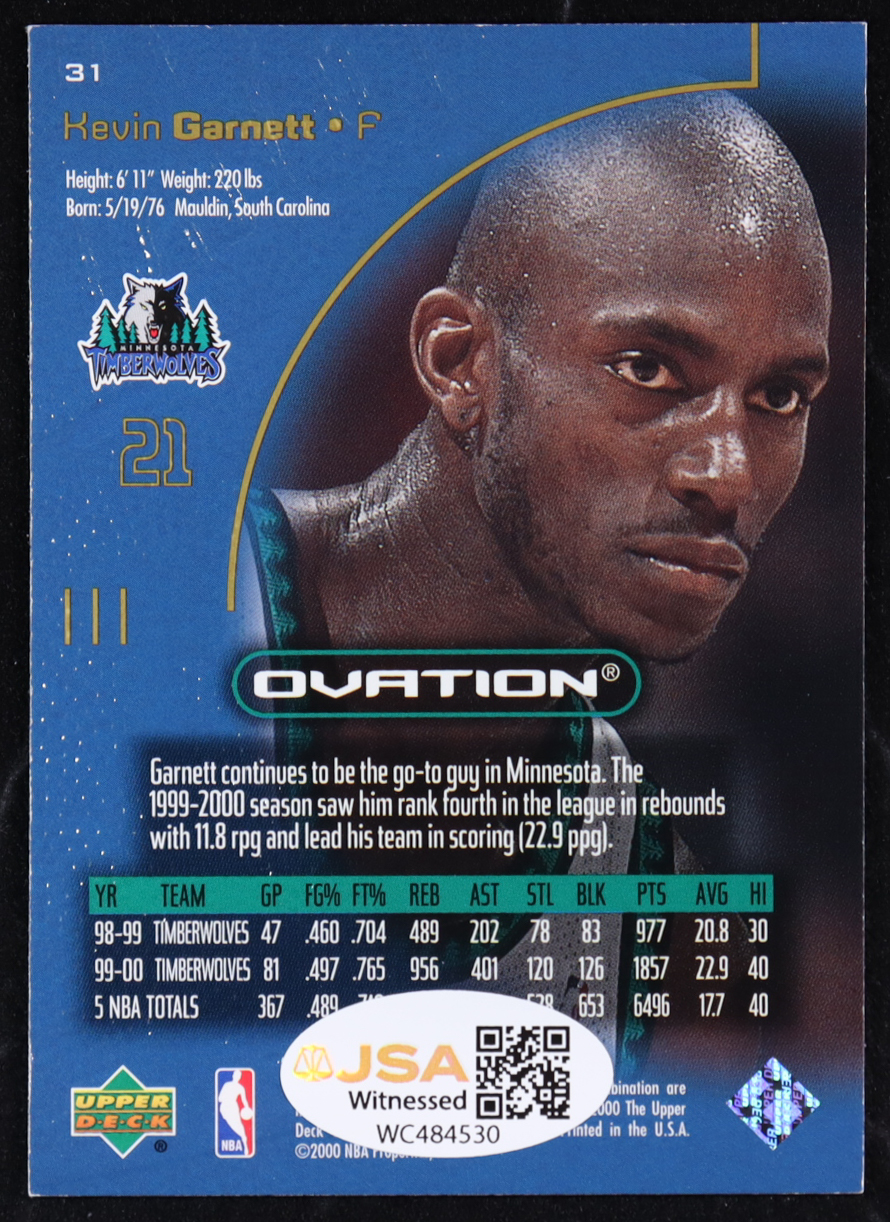 Kevin Garnett Signed 2000-01 Upper Deck Ovation #31 (JSA)