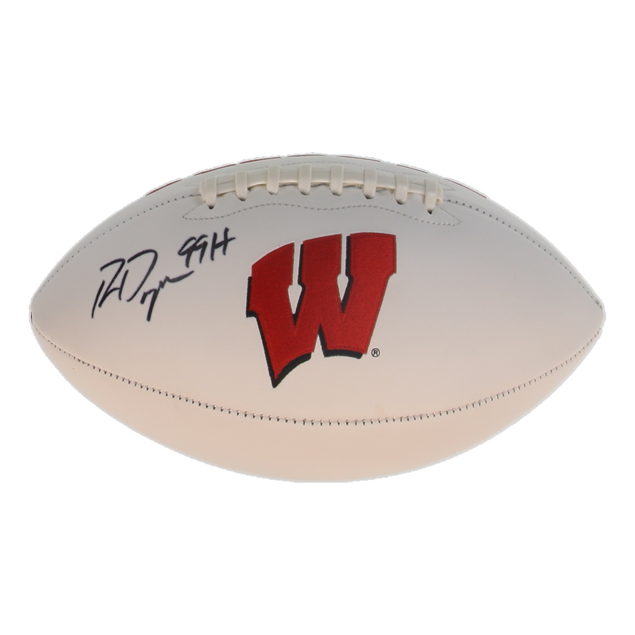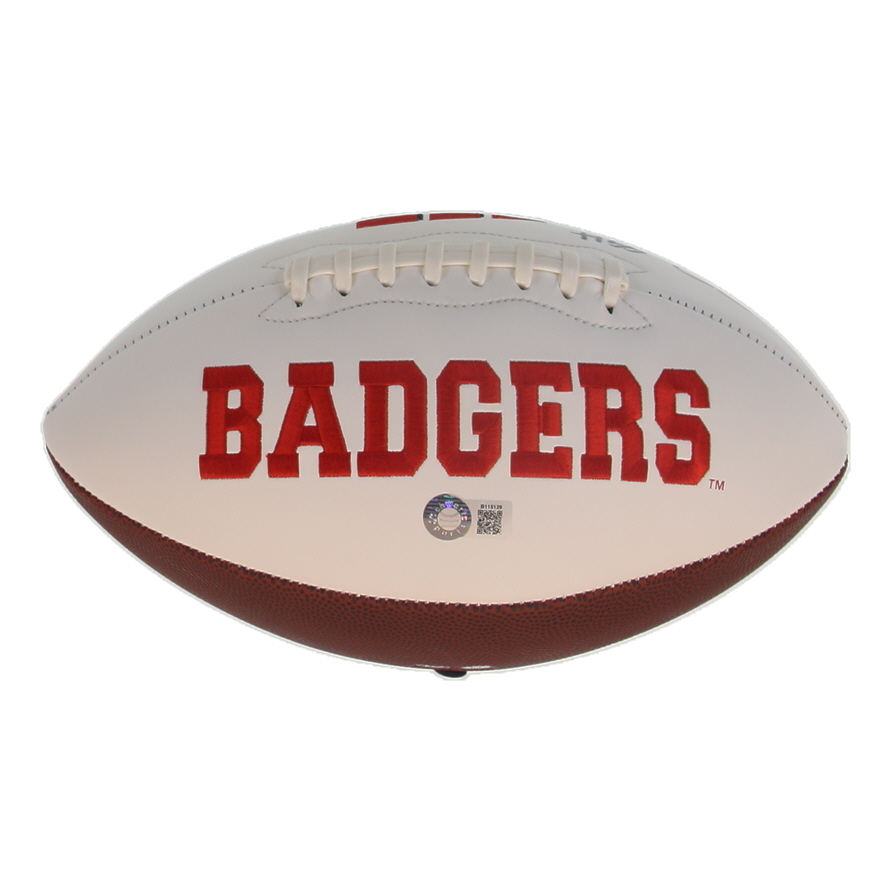 Franklin Wisconsin Badgers logo football has been hand-signed and inscribed by Ron Dayne.