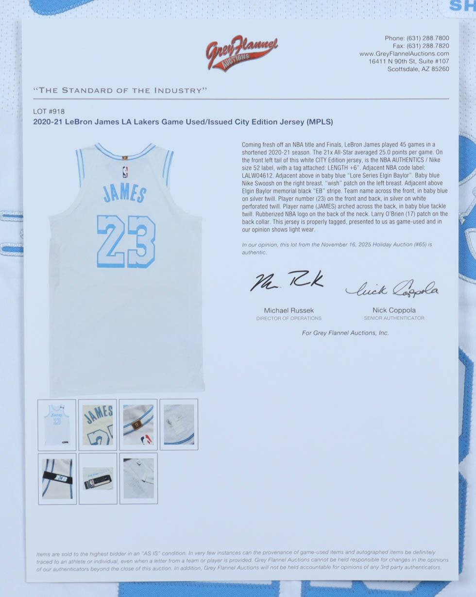 LeBron James 2020-21 Lakers Nike City Edition Game-Used Authentic Jersey (Grey Flannel)