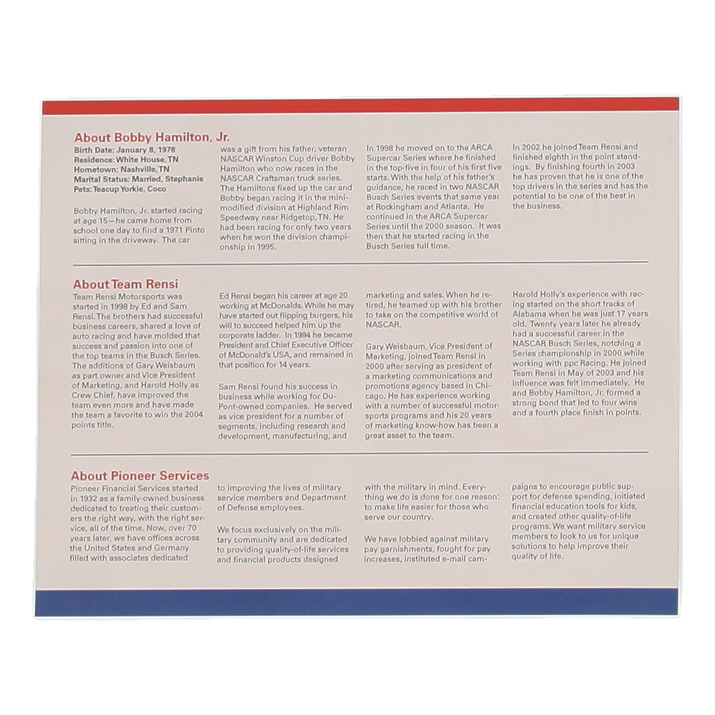 Hero card has been hand-signed by Bobby Hamilton (D. 2007)