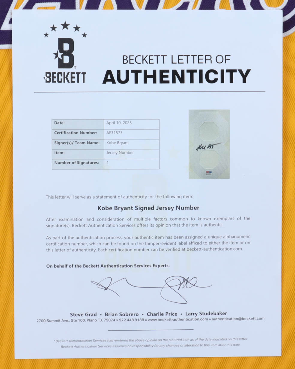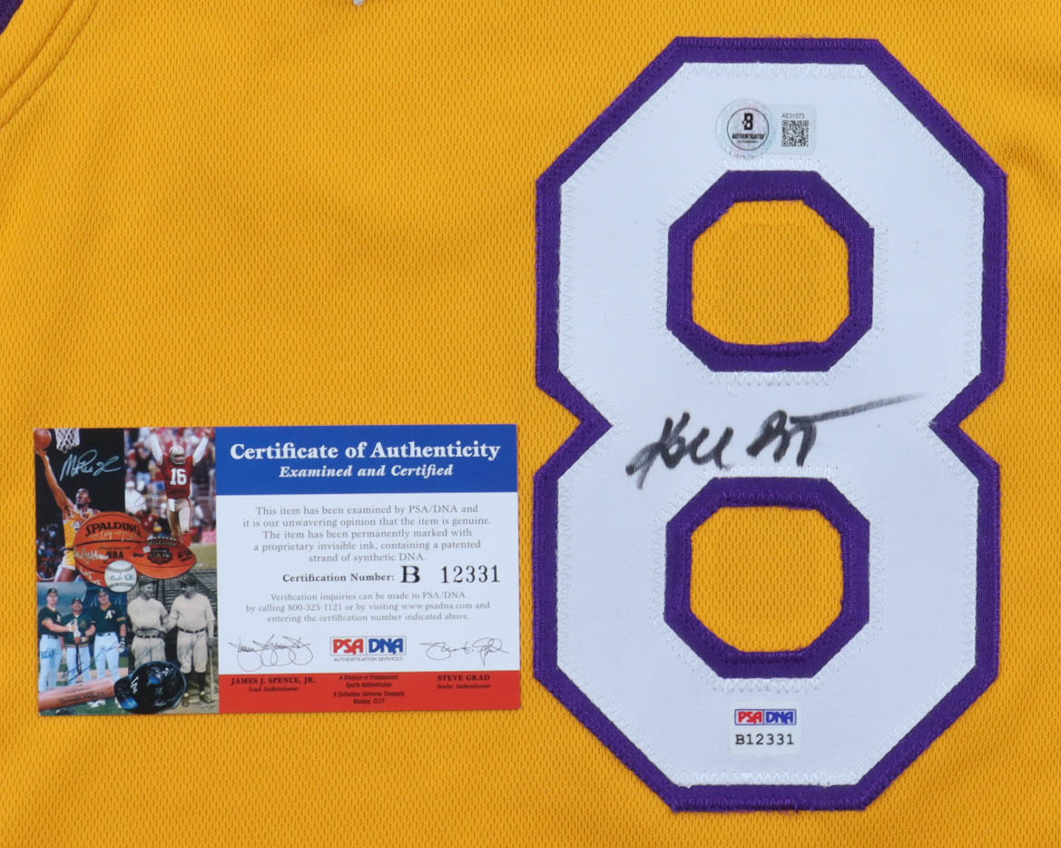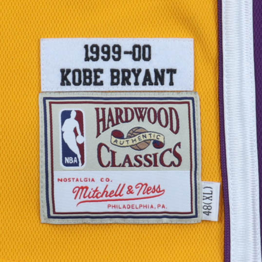 Jersey number has been sewn onto authentic Mitchell & Ness jersey. Size 48 (XL). Hand-signed by Kobe Bryant (D. 2020, Los Angele Lakers, HOF)