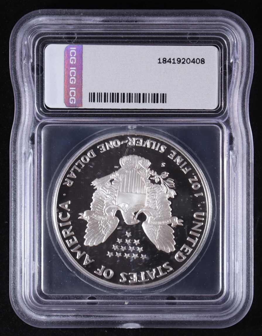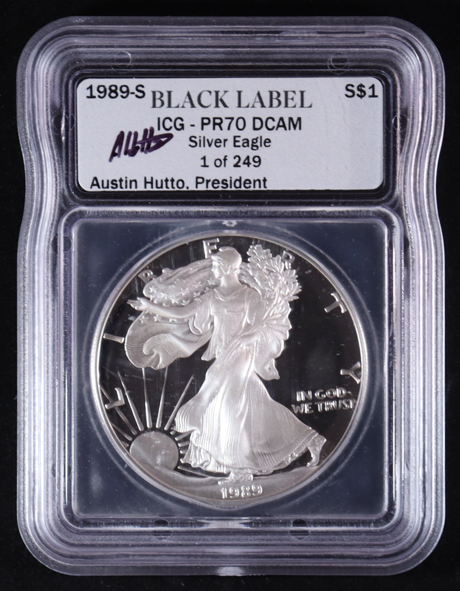 1989-S American Silver Eagle $1 Dollar Proof - Austin Hutto Signature Black Label #1/249 (ICG PR70 DCAM)