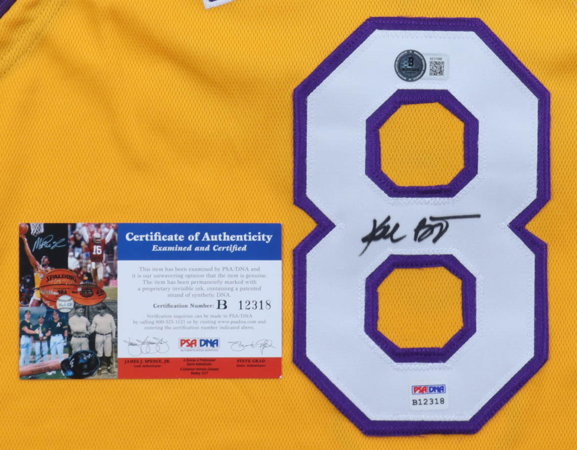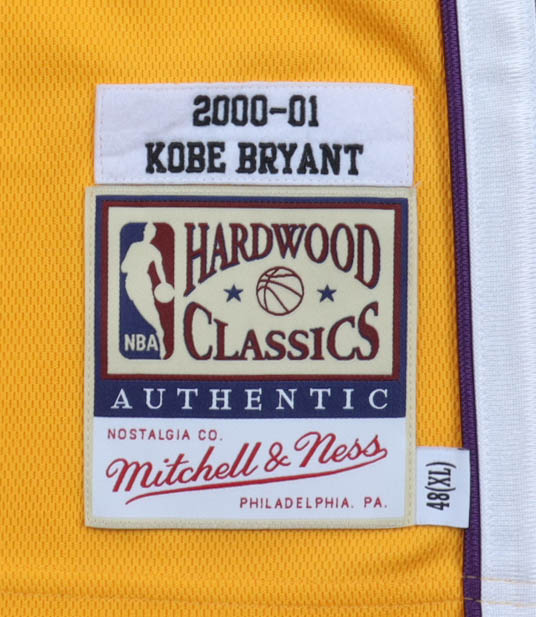 Jersey number has been sewn onto authentic Mitchell & Ness jersey. Size 48 (XL). Hand-signed by Kobe Bryant (D. 2020, Los Angele Lakers, HOF)