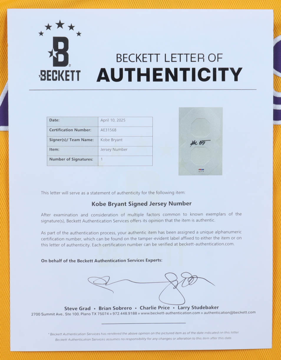 Kobe Bryant Signed Jersey Number Sewn Onto 2000-01 Lakers Mitchell & Ness Authentic Jersey (Beckett & PSA)