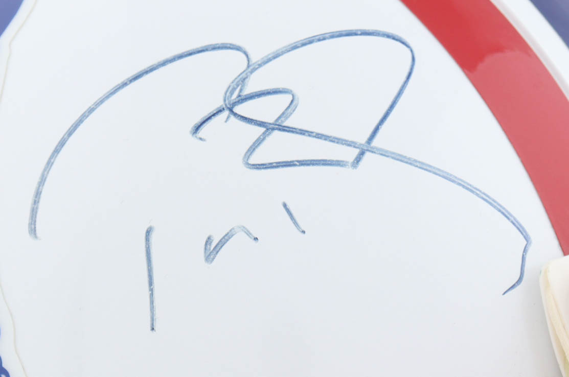 Schutt New England Patriots full-size authentic on-field throwback helmet has been hand-signed by Tom Brady!