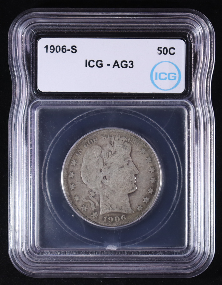 1906-S Barber 50C Silver Half Dollar (ICG AG3)