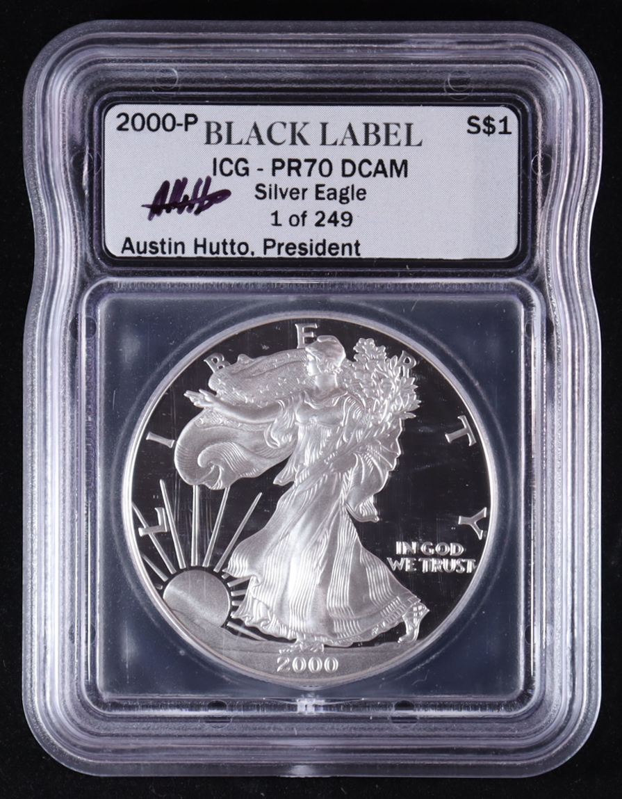 2000-S American Silver Eagle $1 Dollar Proof - Austin Hutto Signature Black Label #1/249 (ICG PR70 DCAM)